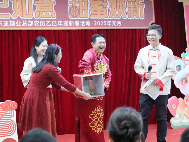 歡聲笑語,喜氣洋洋,更有醒獅舞動暖場!總部22樓喜慶的裝飾遍布每個(gè)角落,讓整個(gè)活動現(xiàn)場都沉浸在一片歡樂與祥和之中。下午15:00許,迎新春活動正式拉開帷幕。首先,汪鴻洲首席執(zhí)行官發(fā)表了熱情洋溢的講話。汪首席向一直以來努力工作、辛勤付出的員工同事們表示衷心的感謝,向全體員工和家屬以及關(guān)心支持東亞糖業(yè)發(fā)展的朋友們致以新春的誠摯慰問和節(jié)日的衷心祝福。汪首席指出,過去的一年,全體東亞人凝心聚力、克難攻堅(jiān),取得了較好的經(jīng)營業(yè)績,在“高端化、智能化、綠色化”方面取得新的進(jìn)展,公司繼續(xù)保持穩(wěn)中向好發(fā)展態(tài)勢,成績來之不易;新的一年,機(jī)遇和挑戰(zhàn)并存,社會經(jīng)濟(jì)及糖業(yè)發(fā)展形勢仍不容樂觀,為應(yīng)對挑戰(zhàn),我們必須與時(shí)俱進(jìn),加快數(shù)字化轉(zhuǎn)型升級步伐,打造智慧化企業(yè),進(jìn)一步實(shí)現(xiàn)“降本、提質(zhì)、增效”;我們更要培育糖業(yè)新質(zhì)生產(chǎn)力,賦能創(chuàng)新發(fā)展,滿足市場和客戶不斷變化的需求,實(shí)現(xiàn)集團(tuán)公司穩(wěn)健和高質(zhì)量發(fā)展。