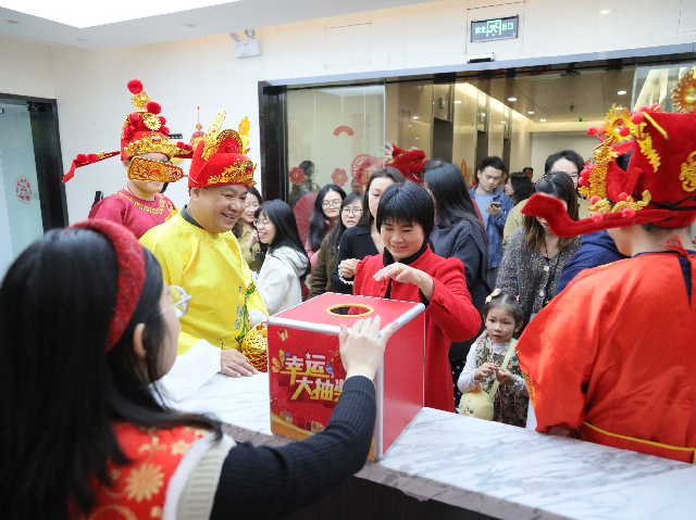 緊接著進(jìn)行歌舞串燒喜慶表演,隨之就進(jìn)入了激動人心的抽獎環(huán)節(jié),大家都期待著將屬于自己的那份“好運(yùn)”。而事先已隨機(jī)分發(fā)領(lǐng)取帶有編號的抽獎券,則是開啟這份幸運(yùn)的“鑰匙”。伴隨著驚喜和歡笑聲,公司領(lǐng)導(dǎo)分別為現(xiàn)場員工抽取了董事長特別獎、CEO特別獎、一等獎、二等獎、三等獎,開獎時(shí)驚喜和尖叫,掌聲吶喊聲,一浪比一浪高,瞬間就掀起了活動的小高潮。未在抽獎環(huán)節(jié)獲獎的員工也有機(jī)會領(lǐng)取一份“甜蜜相伴獎”,獎項(xiàng)雖有別,但祝福的內(nèi)核毫無二致,大家都收獲了新年滿滿的好運(yùn)與喜悅!